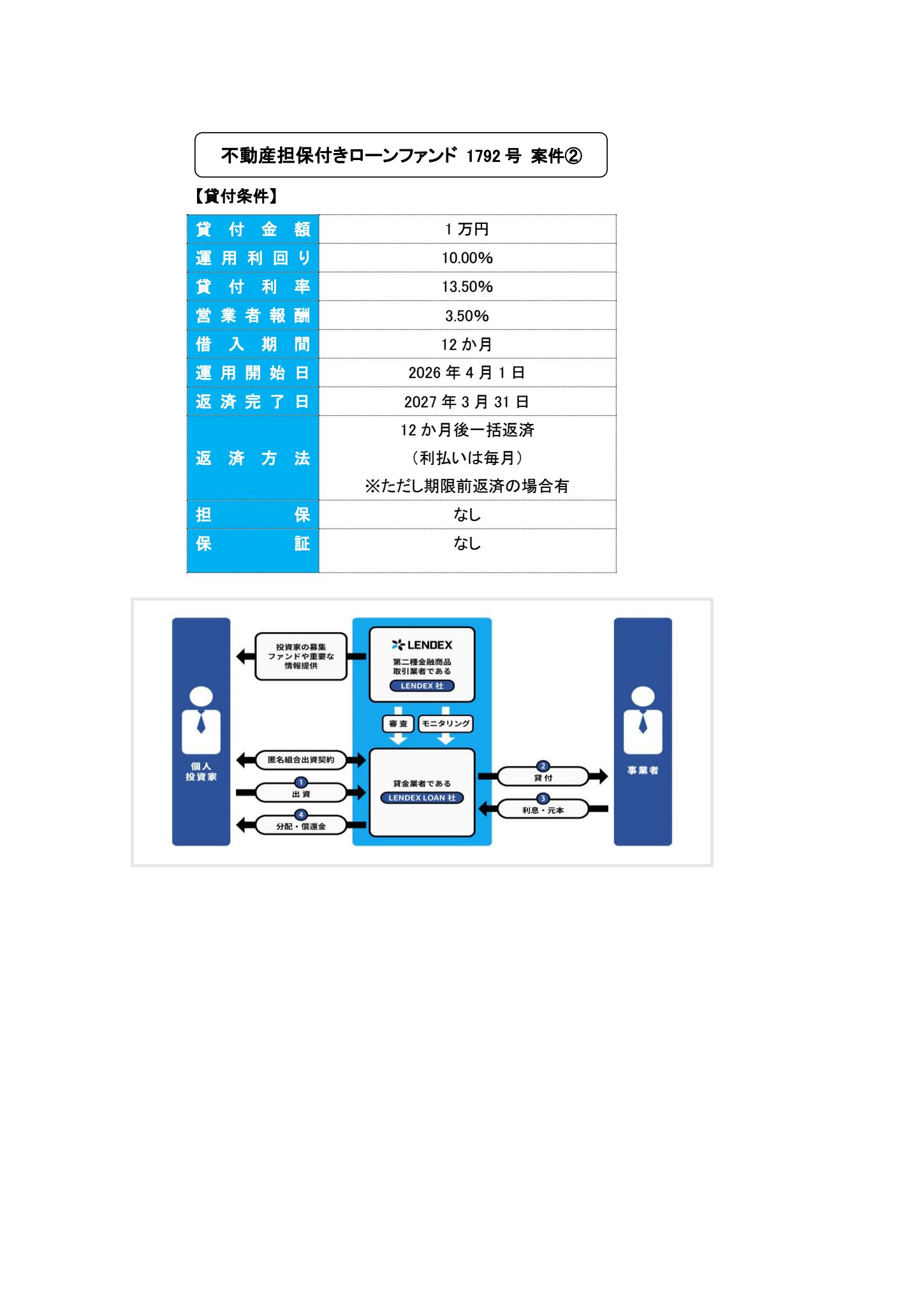 | ファンド名称 | 不動産担保付きローンファンド 1792号 | |